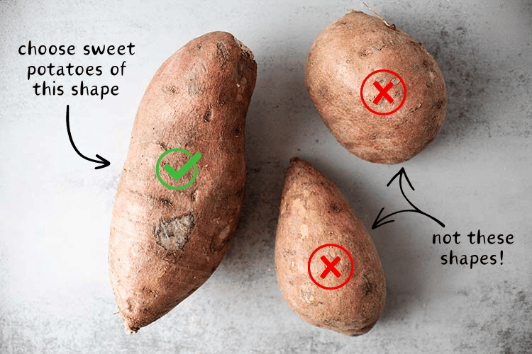 To make cutting the fries easier, try to choose sweet potatoes with a relatively consistent and long shape: