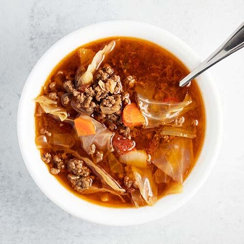 This hearty Beef Cabbage Soup is just what you’ve been looking for. Cabbage, carrots, and other veggies are combined with ground beef for a satisfying and warming soup!